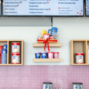 Homewood Creations provided fully customized cabinetry and countertops for Snelgrove Ice Cream, thoughtfully designed to reflect the brand’s classic, nostalgic charm while meeting the practical needs of a high-traffic ice cream parlor. The cabinetry was built to maximize storage and workspace efficiency, featuring deep drawers, concealed shelving, and durable hardware to support daily operations. The countertops were crafted from high-quality, food-safe materials, offering a sleek, easy-to-clean surface ideal for serving and preparation areas. Every element—from material selection to layout—was tailored to match the shop’s aesthetic and workflow, resulting in a seamless blend of style, durability, and functionality that enhances both employee efficiency and customer experience.